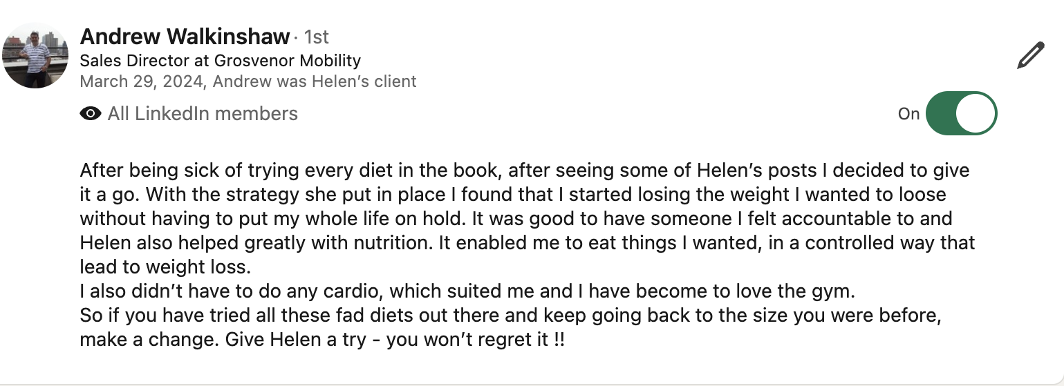 Client in his late 40's: "This is the best shape of my life"